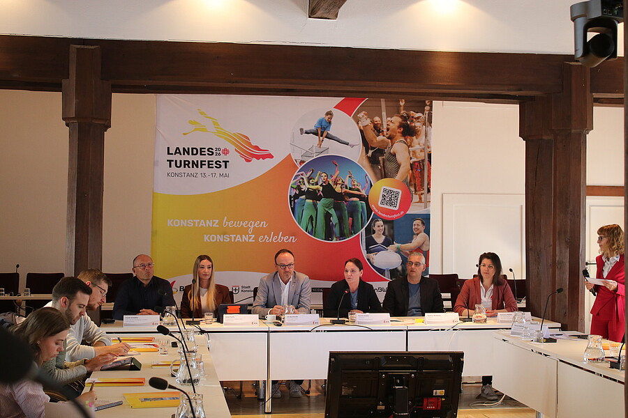 Landesturnfest 2026 – da kommt etwas ganz Großes auf Konstanz und das benachbarte Kreuzlingen zu. Am Bodensee ist man bereit und freut sich darauf. „Das Landesturnfest ist eine Einladung an alle“, so OB Uli Burchardt auf der Pressekonferenz des ausrichtenden Badischen Turner-Bunds (BTB) am 21. April im historischen Ratssaal des Rathauses in Konstanz. Rekordturnerin Eli Seitz ist Turnfestbotschafterin.